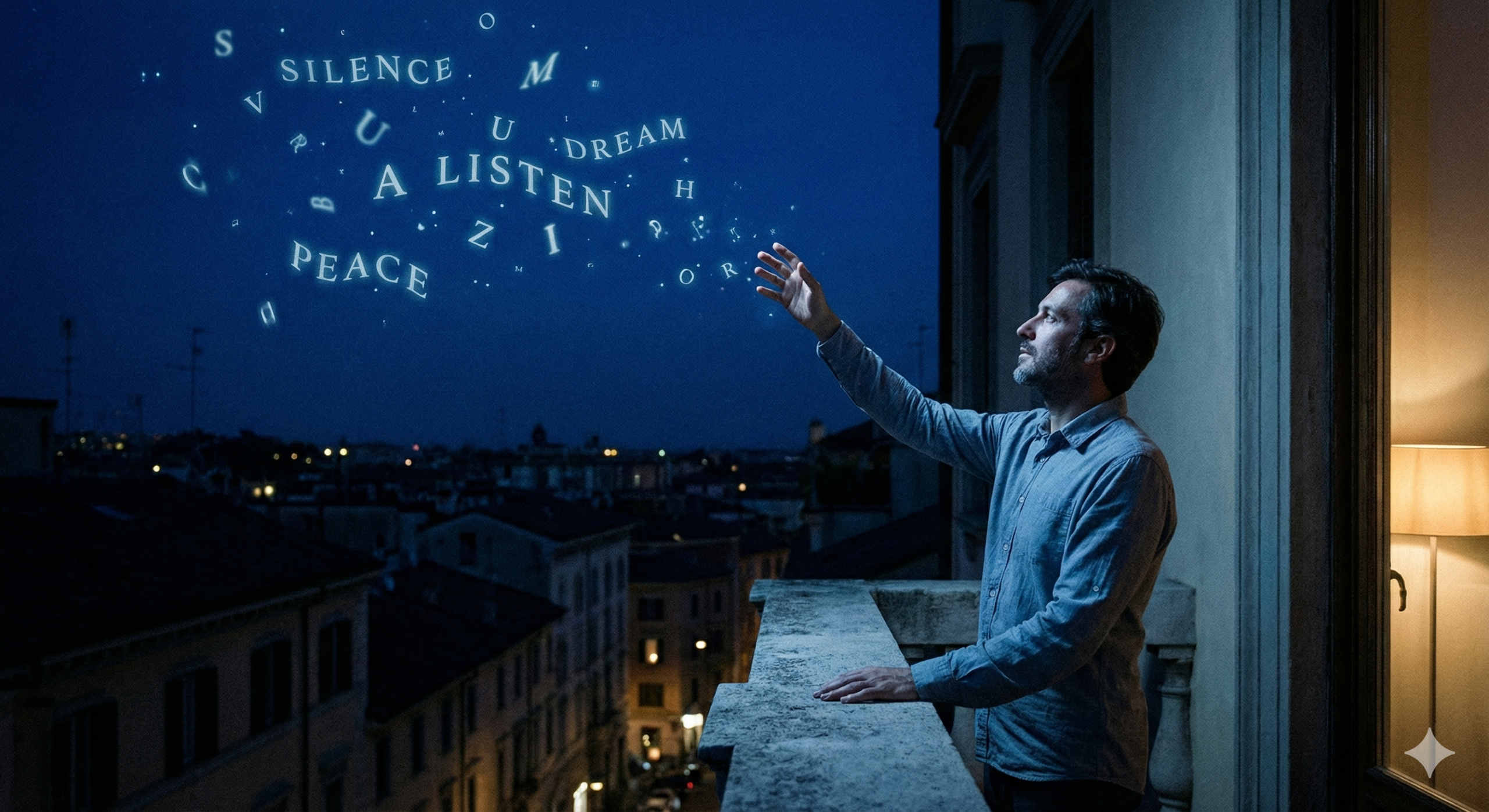 Il silenzio è il mio spazio creativo per eccellenza. È una tela bianca. Quando tutto tace, la mia mente smette di essere reattiva (rispondere agli stimoli esterni) e diventa attiva (creare immagini interne). È nel silenzio che il mio “mondo interiore” si espande. Di giorno, il mio mondo interiore è compresso, schiacciato dai doveri. Di notte, si allarga. Le pareti della stanza sembrano sparire e io posso viaggiare nel tempo e nello spazio. Posso tornare bambino. Posso immaginare futuri alternativi. Posso dialogare con persone che non ci sono più.