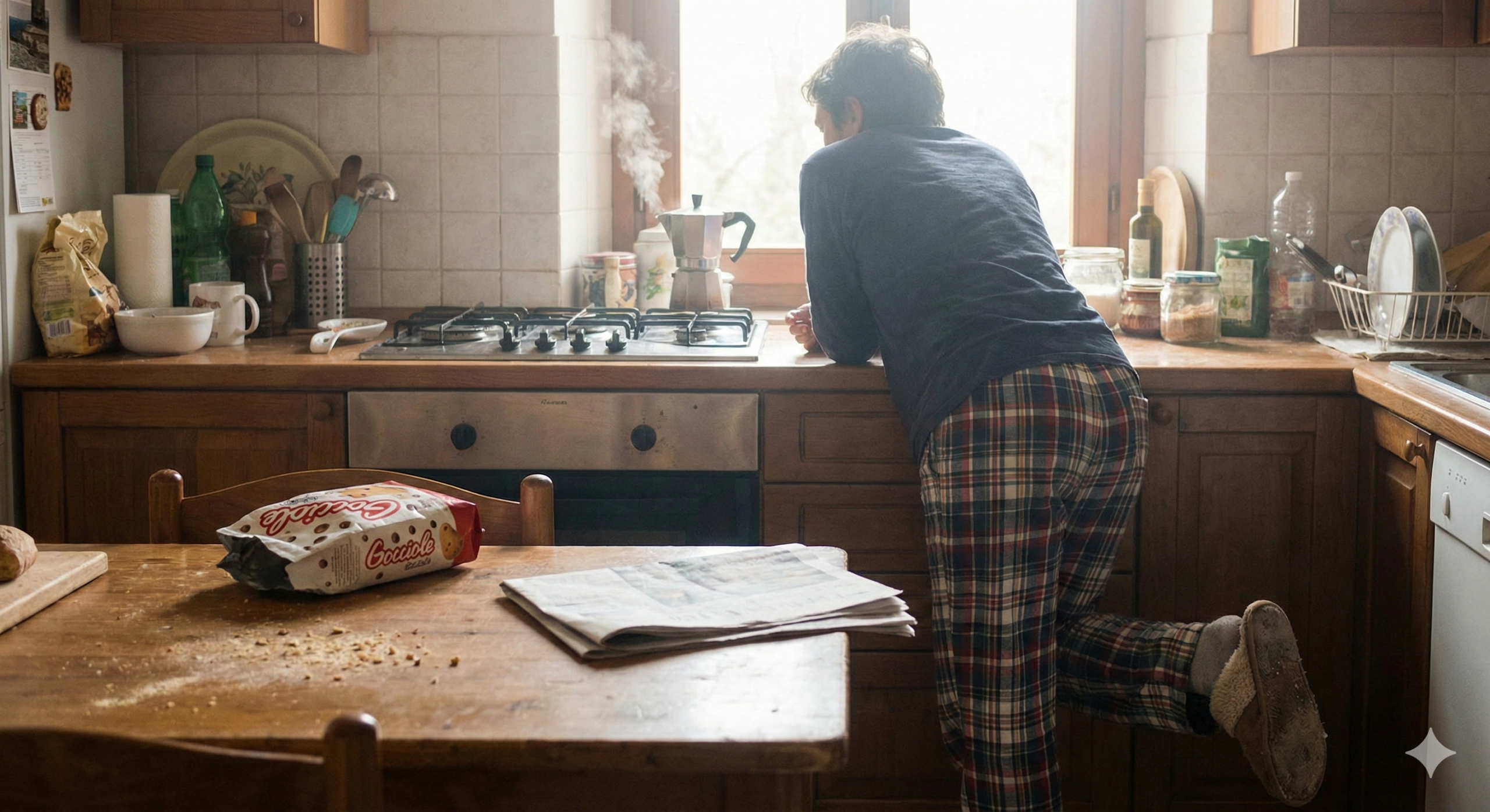 Mi alzo. O meglio, scivolo fuori dal letto come una foca spiaggiata che cerca di tornare in mare. Le ossa scricchiolano. Ho quarant’anni, ma nei primi cinque minuti della giornata me ne sento ottantaquattro. Cammino verso la cucina. Non cammino con passo deciso verso il successo. Cammino trascinando le ciabatte (una diversa dall’altra, spesso), sbattendo la spalla contro lo stipite della porta perché la mia coordinazione motoria è ancora offline.