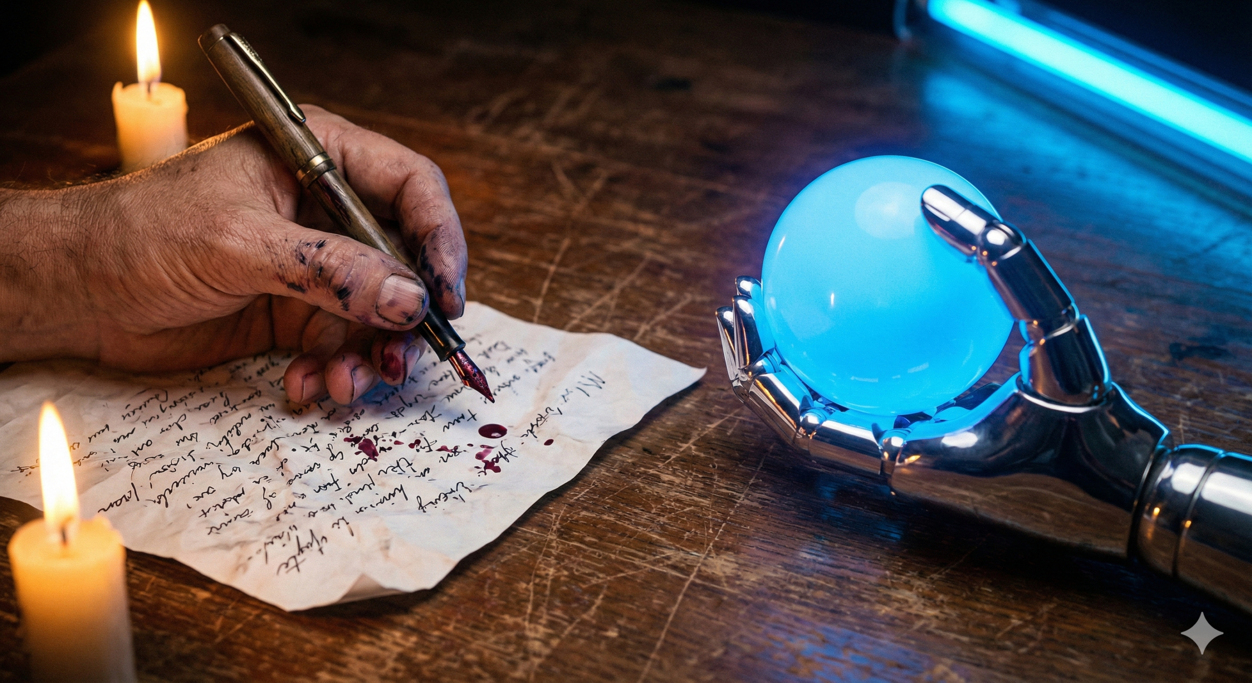 Se io usassi l’AI, romperei questo patto. Vi starei truffando. Vi starei vendendo un’emozione sintetica. Sarebbe come se un amico vi mandasse una lettera di condoglianze scritta da ChatGPT. Le parole potrebbero essere perfette, commoventi. Ma appena scoprite che non le ha scritte lui, che non ci ha messo nemmeno un minuto del suo pensiero, quelle parole diventano cenere. Perdono ogni valore. Perché non cercavate le parole belle. Cercavate la vicinanza dell’amico.